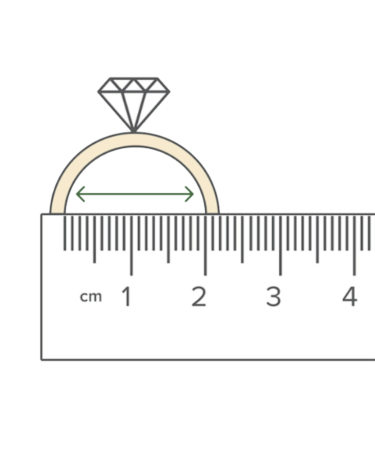 Položite prsten na ravnu površinu i pomoću lenjira izmerite unutrašnji prečnik prstena – od jedne unutrašnje ivice do druge.